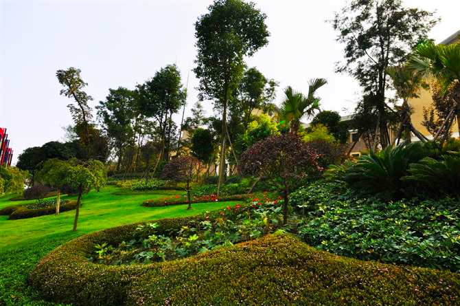 小区景观分园区内景观和沿河自然景观两大部份,园区内采用“绿化渗透,以水布局”的方式,让项目景观与滨河景观溶为一体,突出园林式社区概念,并形成层次丰富的绿化景观。